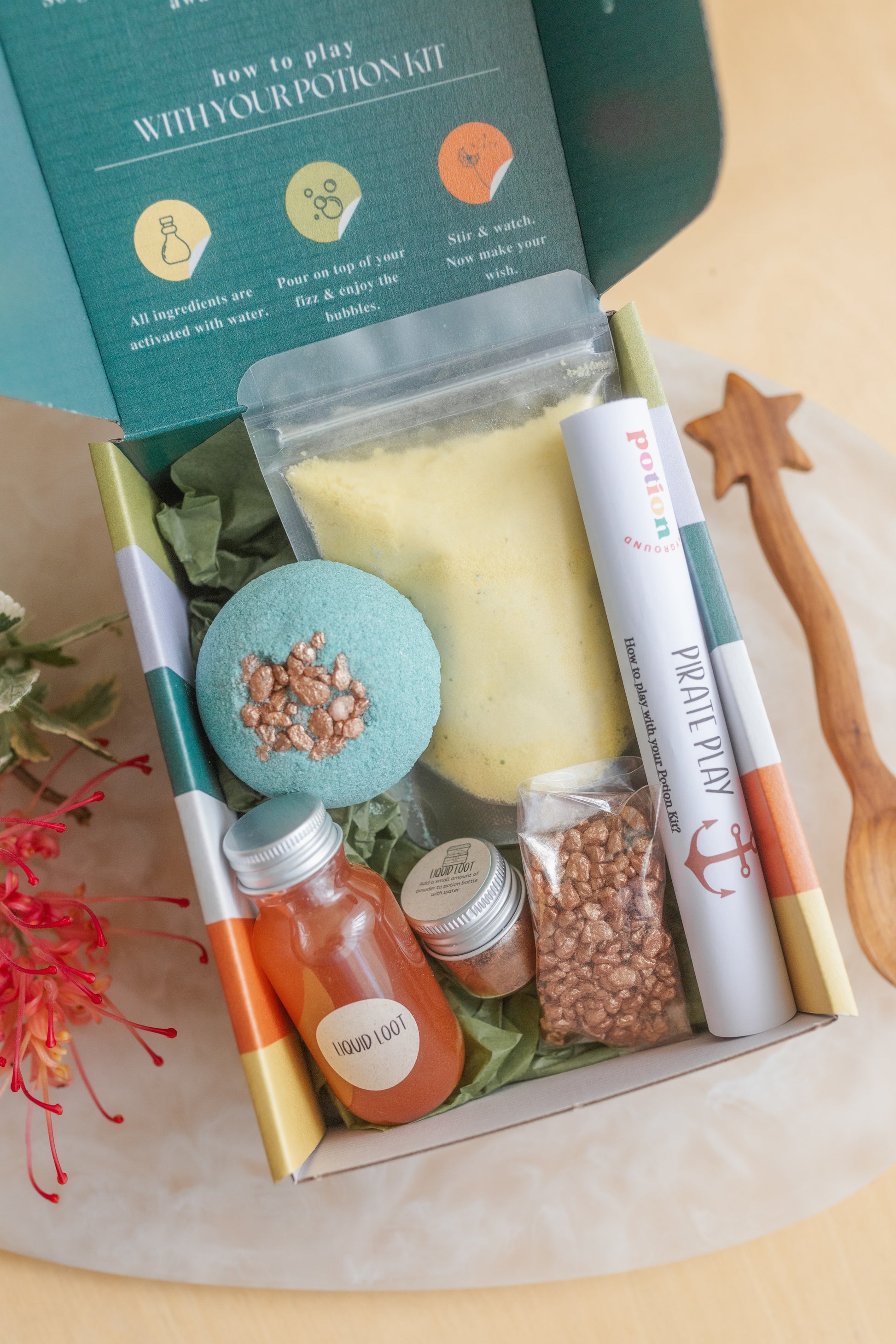 For the pirate lover, and true adventure hunter, this potion kit is fun and full of gold..