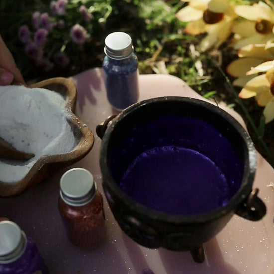 Ingredients: Citric acid, Salt, Bicarbonate of Soda, Rock Salt, Corn Starch, Tapioca Pearls, Bio-glitter, Mica Powder + essential oils.